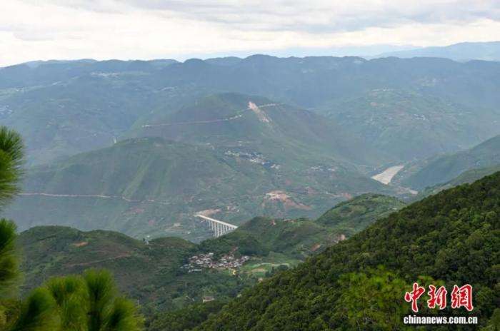 图为7月24日,站在保山市龙陵县松山上远眺高黎贡山上蜿蜒曲折的滇缅公路。中新社记者李嘉娴摄