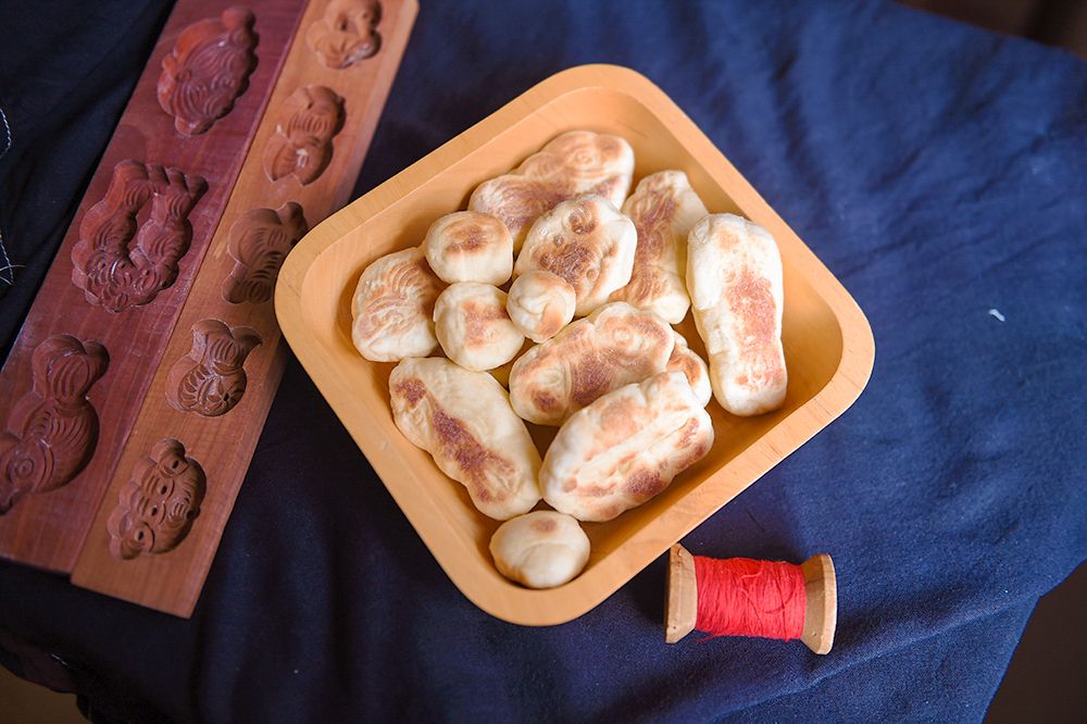 这种又称“乞巧果子”“榼饼”的节令食品在山东、江苏、浙江等多地一直十分流行。在以“胶东花饽饽”闻名的烟台、威海、青岛一带更是制作历史悠久,制作工艺中还包含手工雕刻果模等非遗技艺。