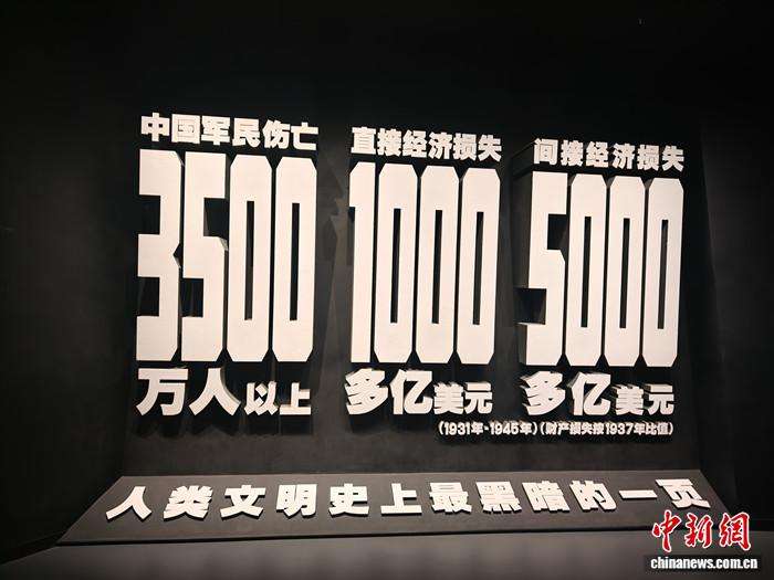 8月15日,中国人民抗日战争纪念馆内,一组醒目的数字,记录着中国人民在抗日战争期间作出的巨大民族牺牲。中新网记者管娜摄