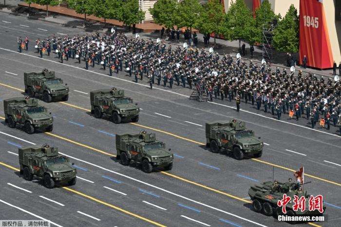 当地时间2025年5月9日,纪念苏联伟大卫国战争胜利80周年阅兵式在俄罗斯首都莫斯科举行。图为战车编队从红场驶过。