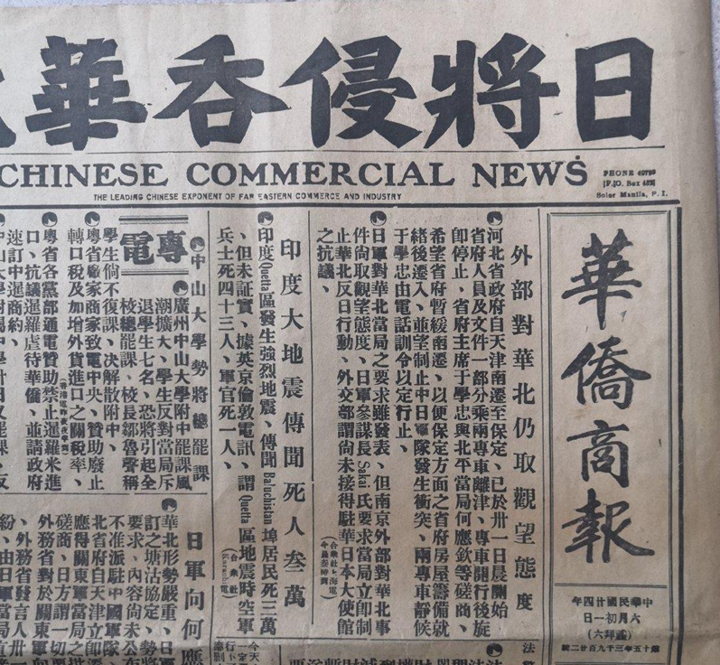 1935年6月菲律宾《华侨商报》报道日本野心侵吞中国。