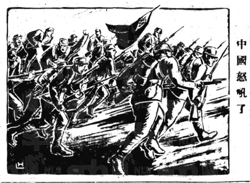 《南洋商报》1937年7月13日刊登版画《中国怒吼了》,表达海外华侨誓与祖国人民共赴国难的决心。