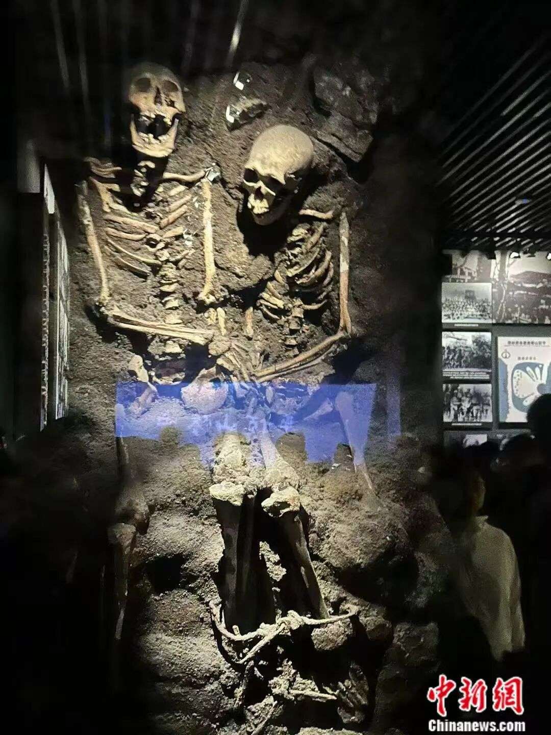 沈阳“九·一八”历史博物馆,日伪在热河制造“集团部落”时杀害我同胞的骸骨。杨茜茜摄