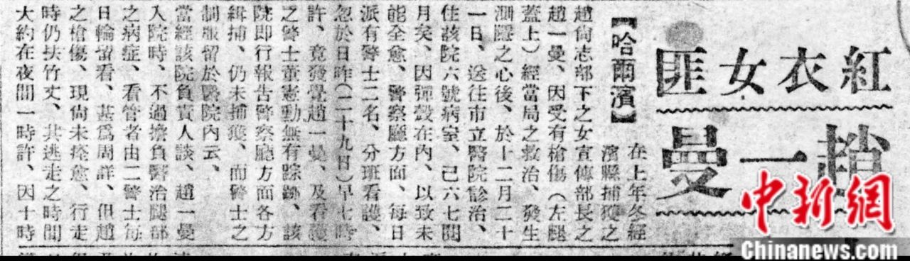 日伪报纸《大同报》刊登赵一曼的消息。沈阳“九·一八”历史博物馆供图