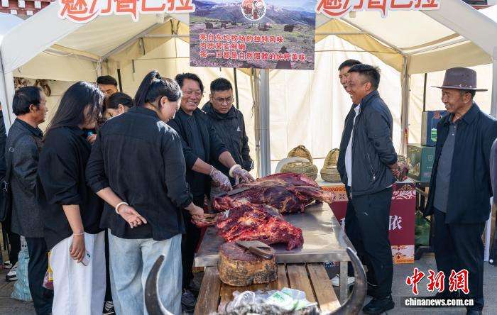 图为参展商正在售卖新鲜的牦牛肉。