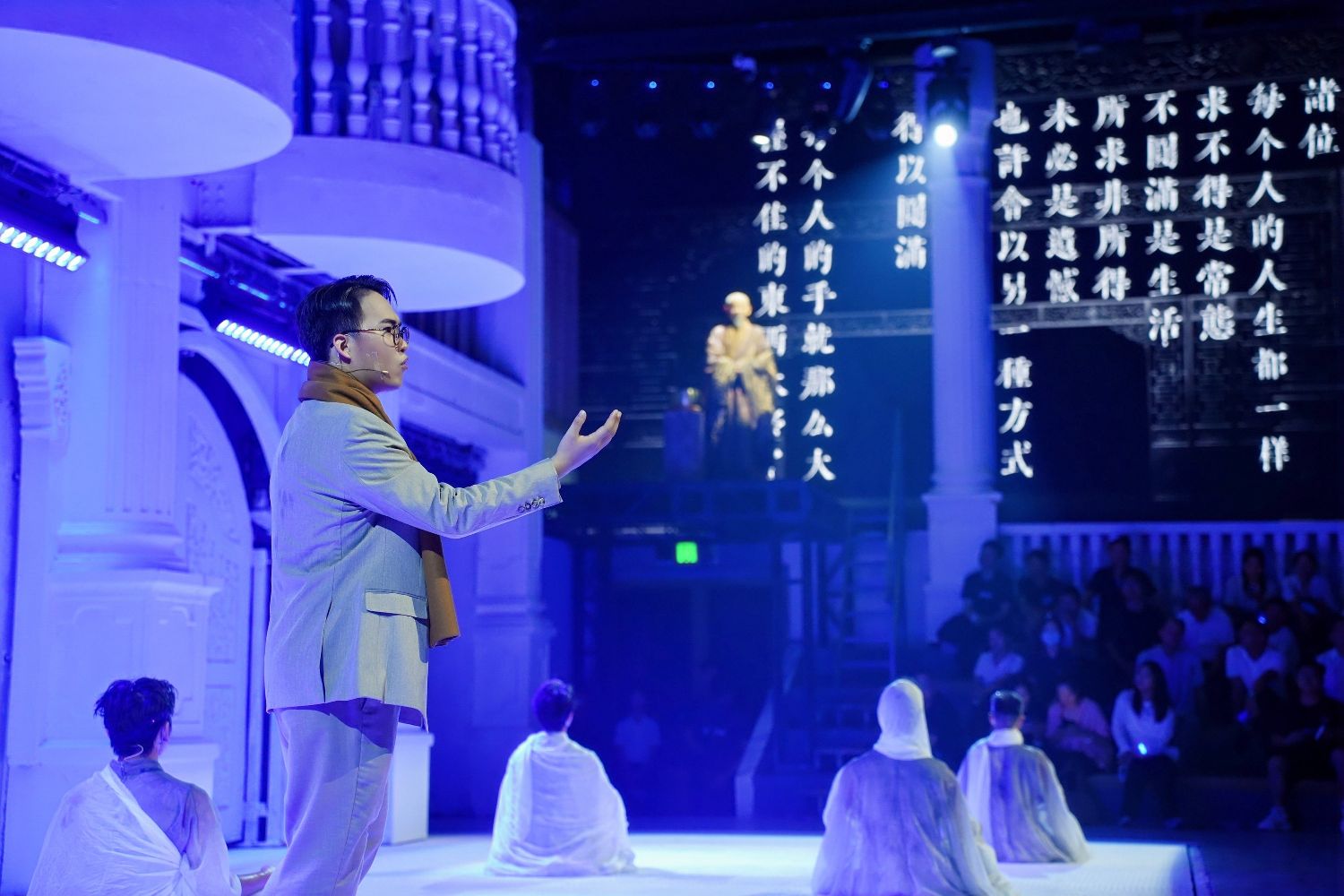 10月1日起,中国首个戏剧盲盒演艺《偶遇世界·因为刺桐》在福建泉州正式开演。图为盲盒剧目《世间再无李叔同》。图/中新社