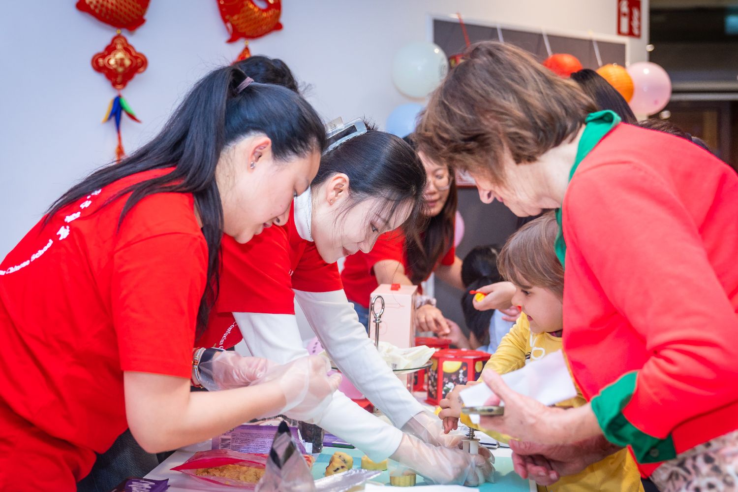 拼装红红火火的中国灯笼,亲手制作软糯甜香的绿豆月饼,在红纸翻飞中剪一纸窗花……中秋节前夕,来自维也纳中文学校孔子课堂的老师们搭起“中秋文化角”展台,在奥地利华人中秋国庆联欢晚会会场边带观众体验中秋文化。维也纳中文学校校长郑婕介绍说,为了保证现场制作月饼的效果,她与老师们提前近半月准备食材,尝试配方。“我们在现场也准备了一些传统月饼,希望让观众们了解到中国月饼的多种形式和团圆甜蜜的美好寓意。”