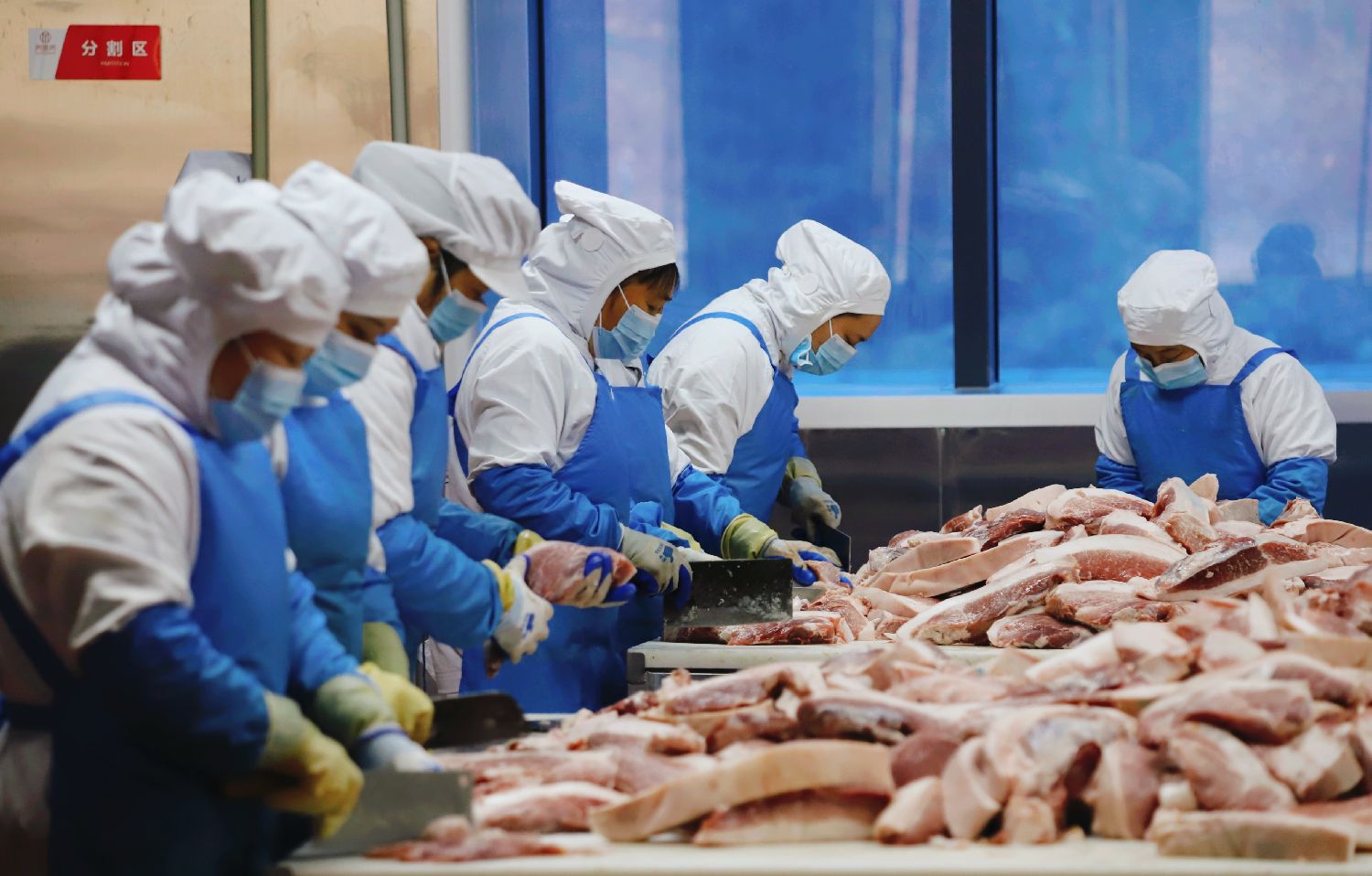 10月9日,工作人员在重庆市城口县坪坝镇的腊肉生产工厂内腌制腊肉。图/中新社