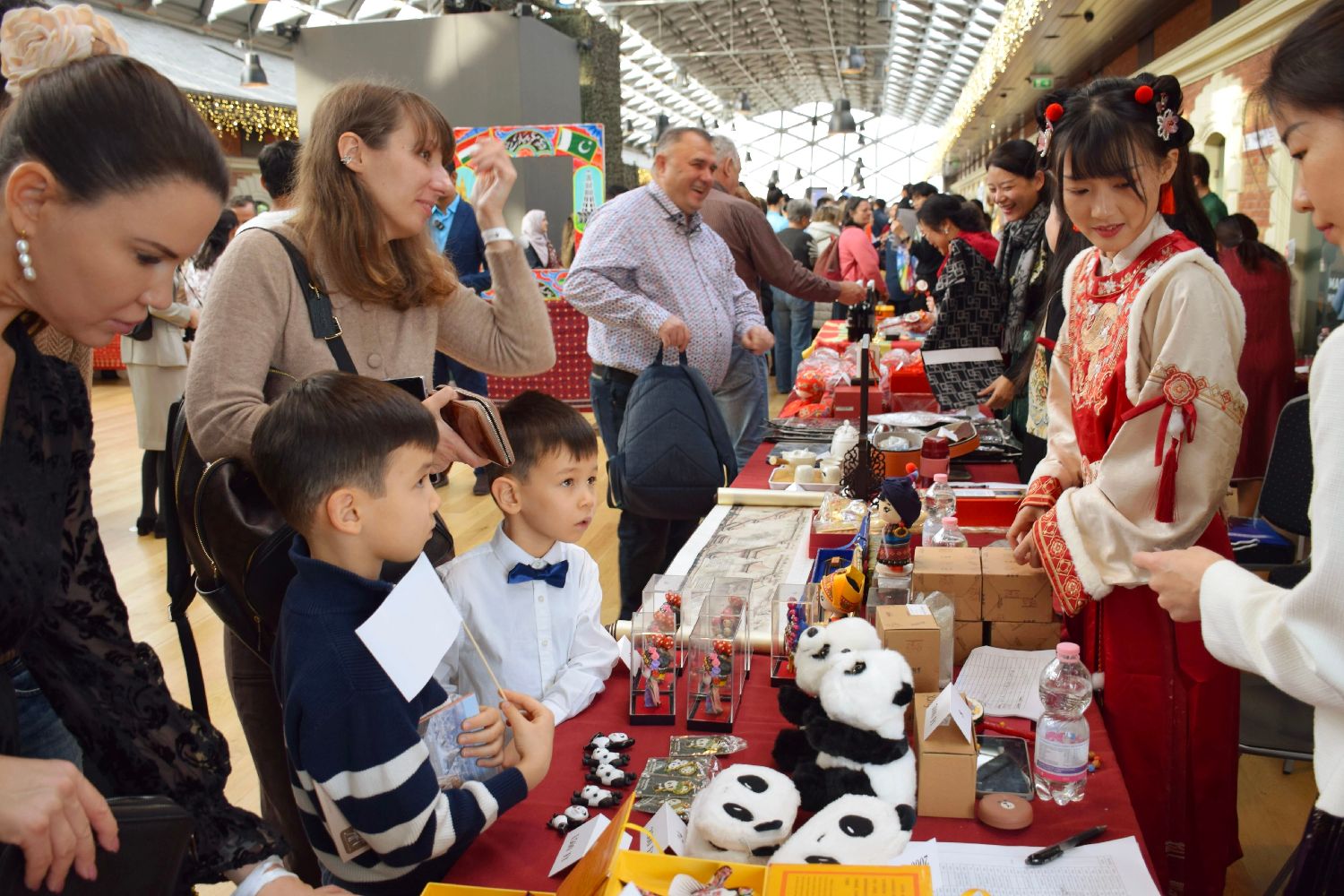 我馆义卖展品琳琅满目,顾客络绎不绝。栩栩如生的丝绸画、独具匠心的手工艺品引来大批顾客驻足欣赏和争相购买,对中国文化的喜爱溢于言表。