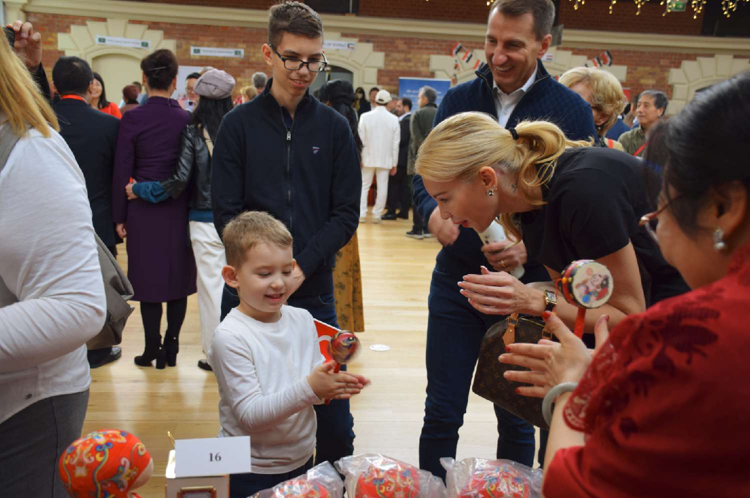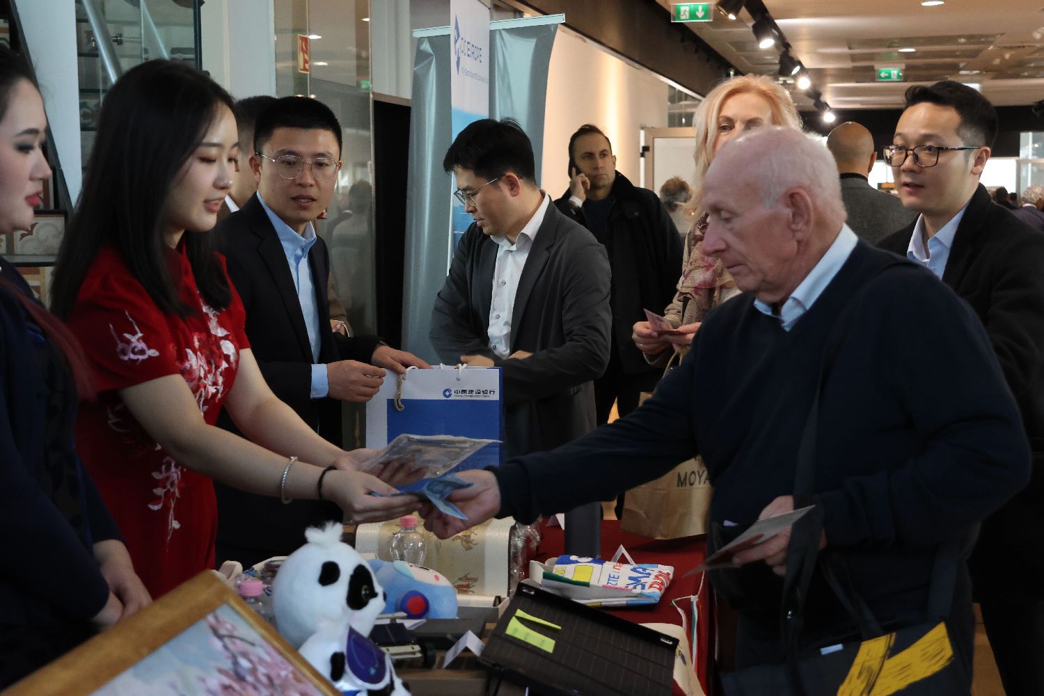 匈牙利中资企业商会9家成员应邀参加义卖,展示中国科技创新和经济发展成果,展台上创意十足的科技和文创产品大受欢迎,大家争相抢购。
