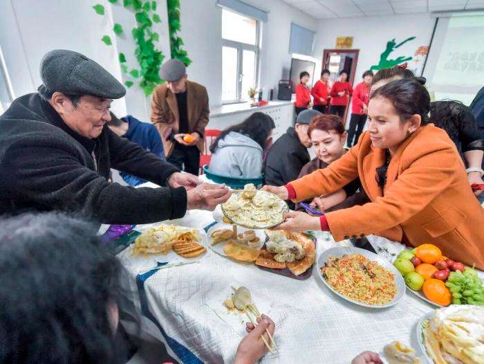 2024年4月10日正值穆斯林传统节日——肉孜节,新疆乌鲁木齐团结西路社区以“促进厨艺交流,增进邻里感情”为主题举办居民互动活动。图/中新社
