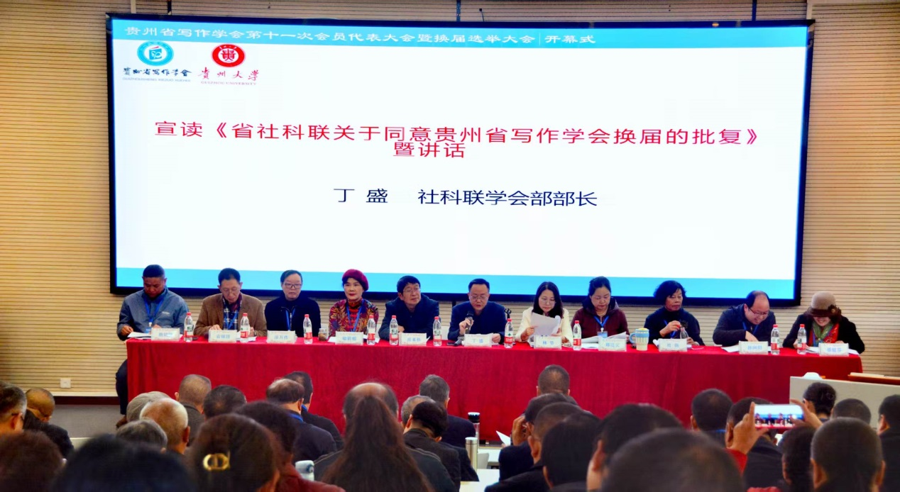 大会在常务副会长林华沉稳有力的主持声中拉开帷幕。贵州省社科联学会部部长丁盛宣读《省社科联关于同意贵州省写作学会换届的批复》并发表讲话,对学会过往工作给予充分肯定,对未来发展寄予殷切期望。游来林会长随后致开幕词,他深情回顾了学会的发展历程,对会员们的辛勤付出表示衷心感谢。