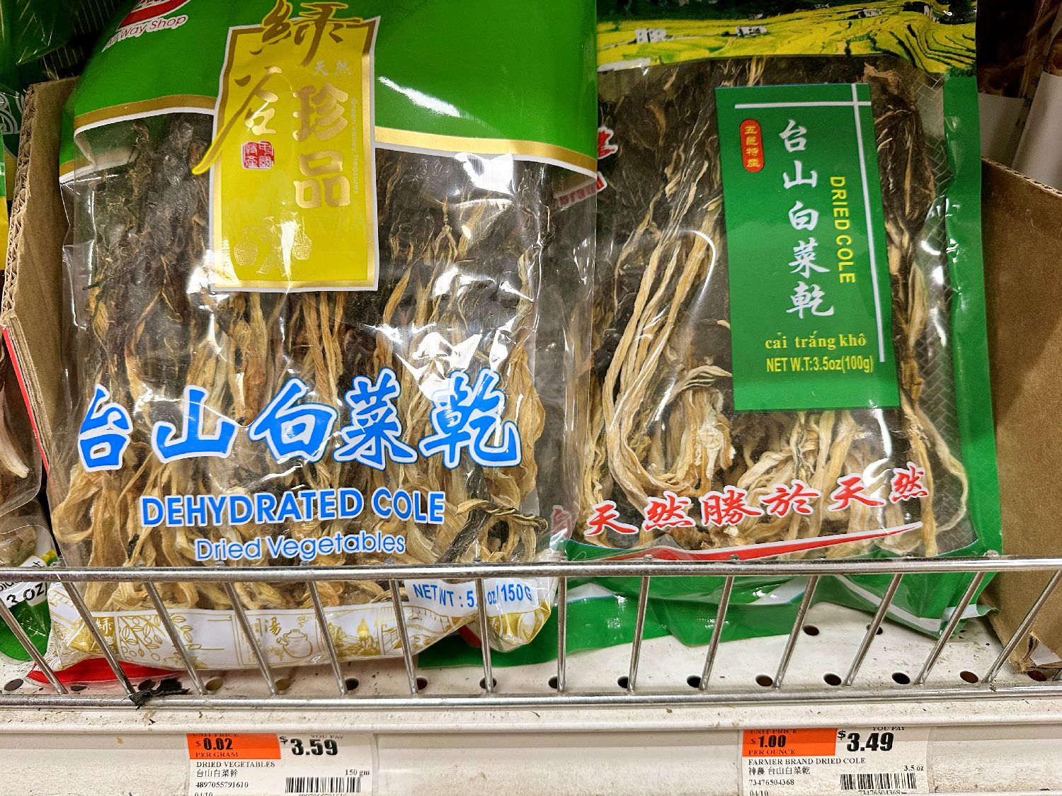 11月30日,美国纽约一家超市出售的台山白菜干。图/中新社