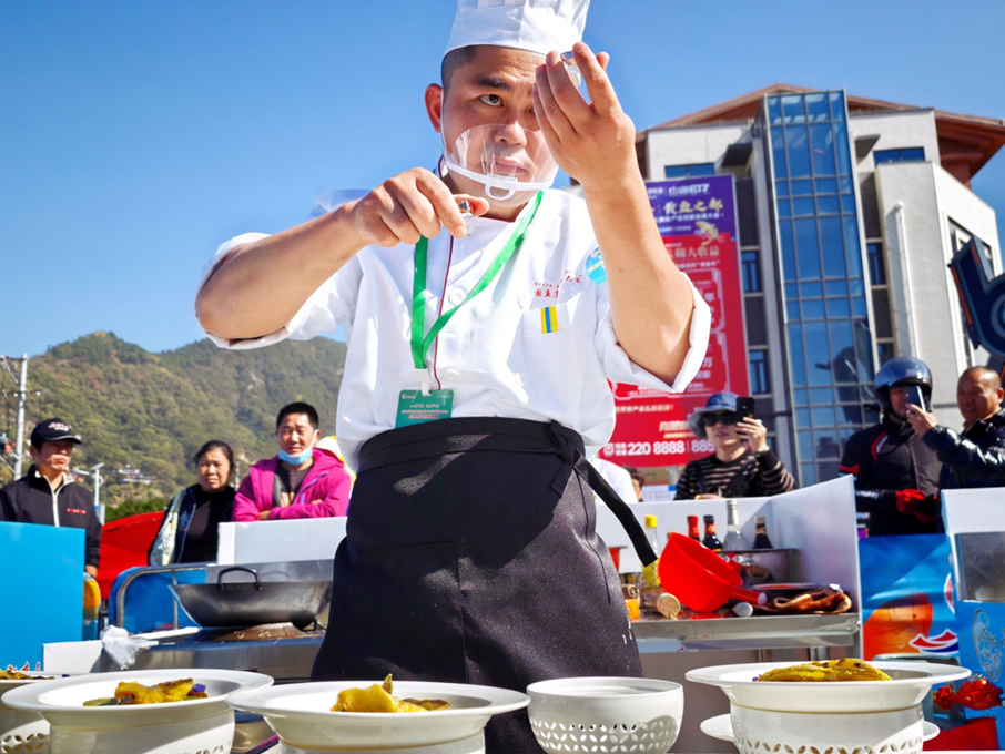 “国鱼烹饪创新大赛”上,厨师正制作大黄鱼创新菜品。图/吴允杰 摄