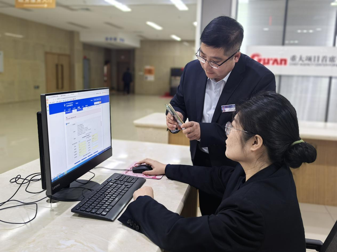 图为河北廊坊固安县行政审批局工作人员通过视频线上指导企业填写申报信息。图/万倩 摄