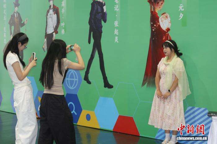 9月26日,2025中国国际网络文学周在浙江杭州开幕。来自全球多个国家的作家、译者、AI技术专家以及网文平台、视听影视机构负责人齐聚,聚焦AI赋能下的网文全球图景,共话“网络文学+”生态打造。图为读者与小说IP人物合影。孙琳茹摄