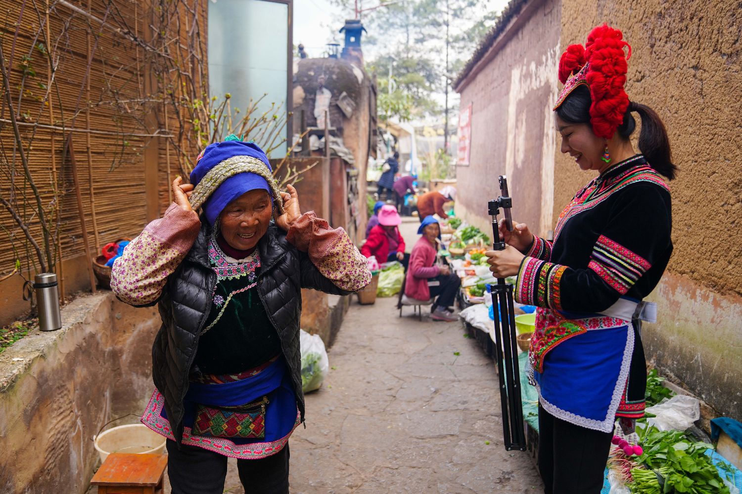 1月11日,期丽在家乡昆明乐居村拍摄村民的生活。图/中新社