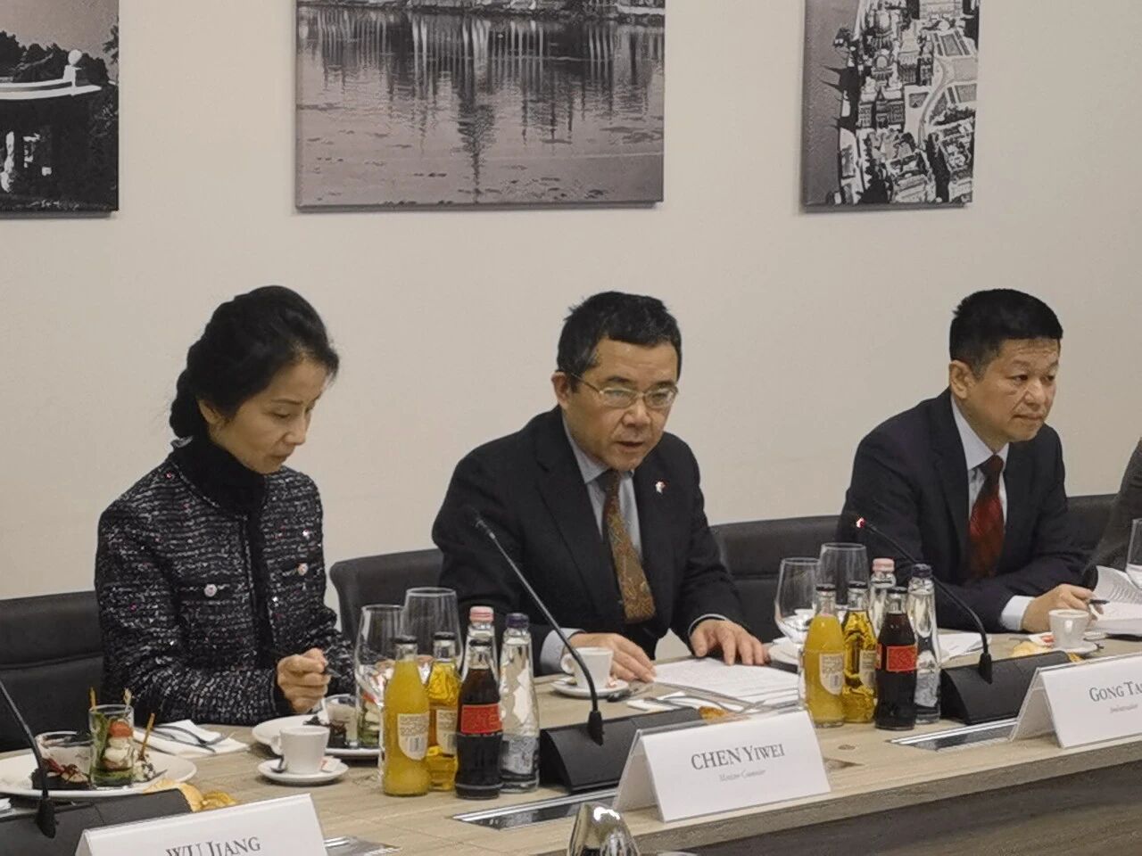 1月13日,中国驻匈牙利大使龚韬出席匈牙利中资企业商会与匈司法部联合举办的早餐会。司法部长图森、国务秘书皮尔兹、托特、陈奕薇公参、刘晓飞会长及11家中企代表出席。