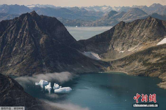 资料图:格陵兰岛东部的海面上漂浮的冰山。