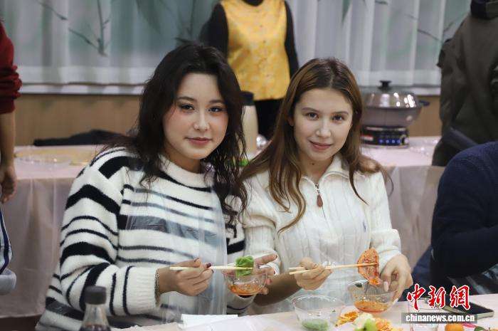 新疆科技学院举办“礼乐交融·情谊联心”——“三进两联一交友”传统文化体验活动。图为学生们在“团圆饺里·情更浓”环节共享亲手制作的饺子。图/中新网