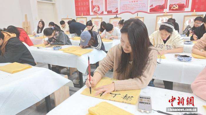 新疆科技学院“翰墨·润疆”小课堂开设书法课程。图/中新网