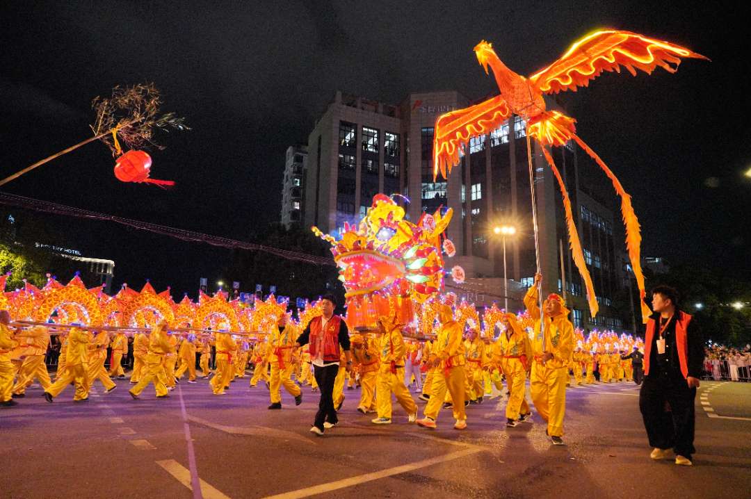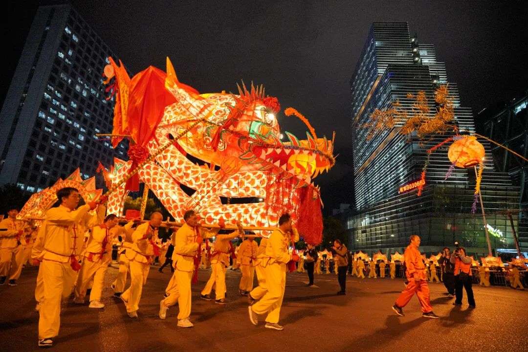 光影中,龙灯腾跃向前、熠熠生辉,勾勒出这座城市实干奋进、蓬勃向上的奋斗图景。
