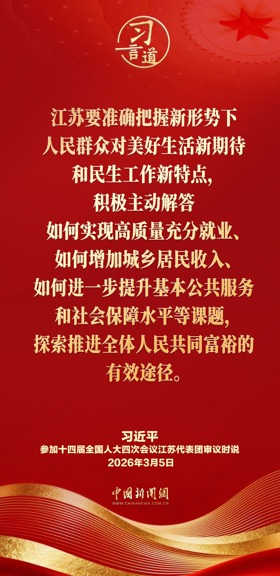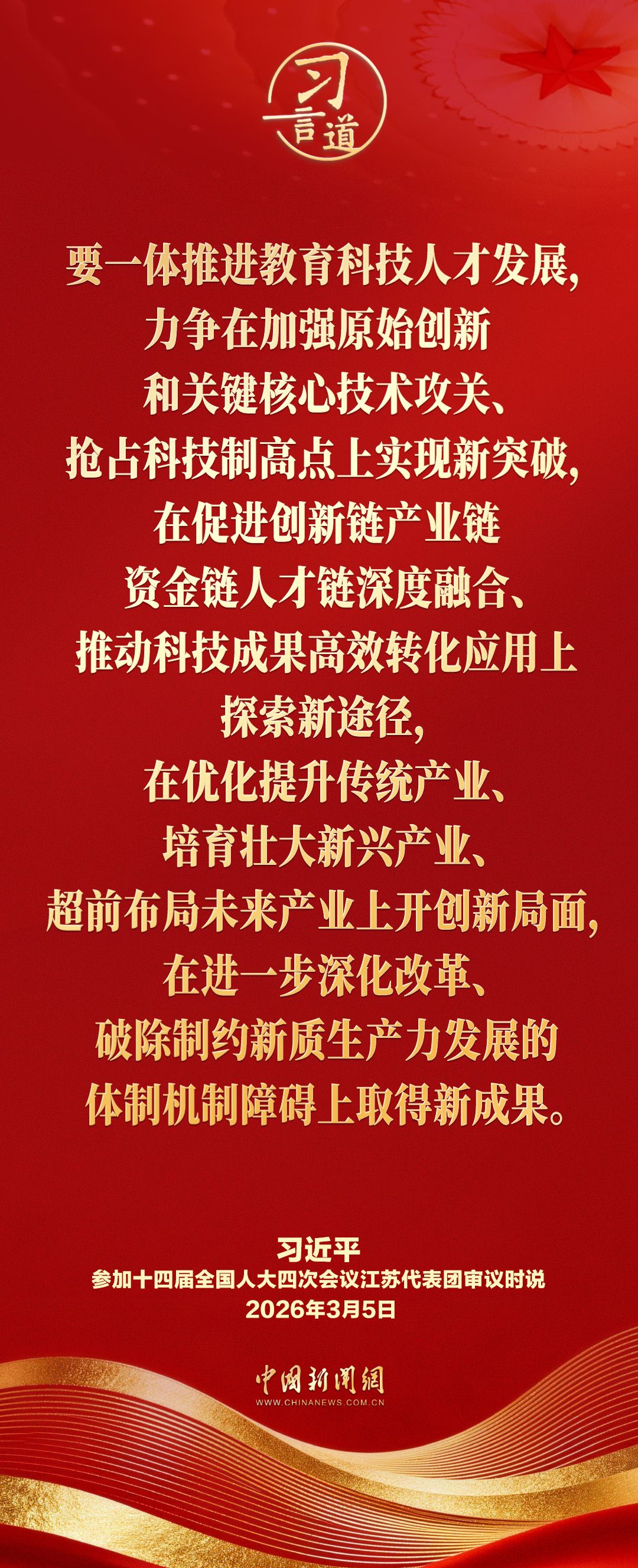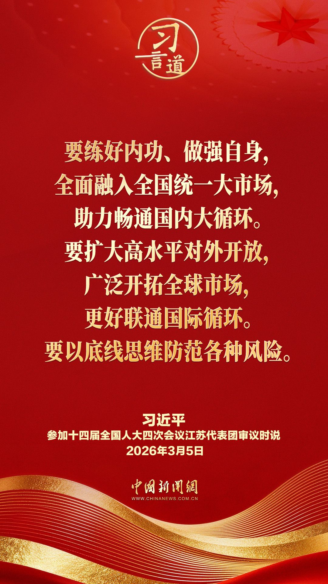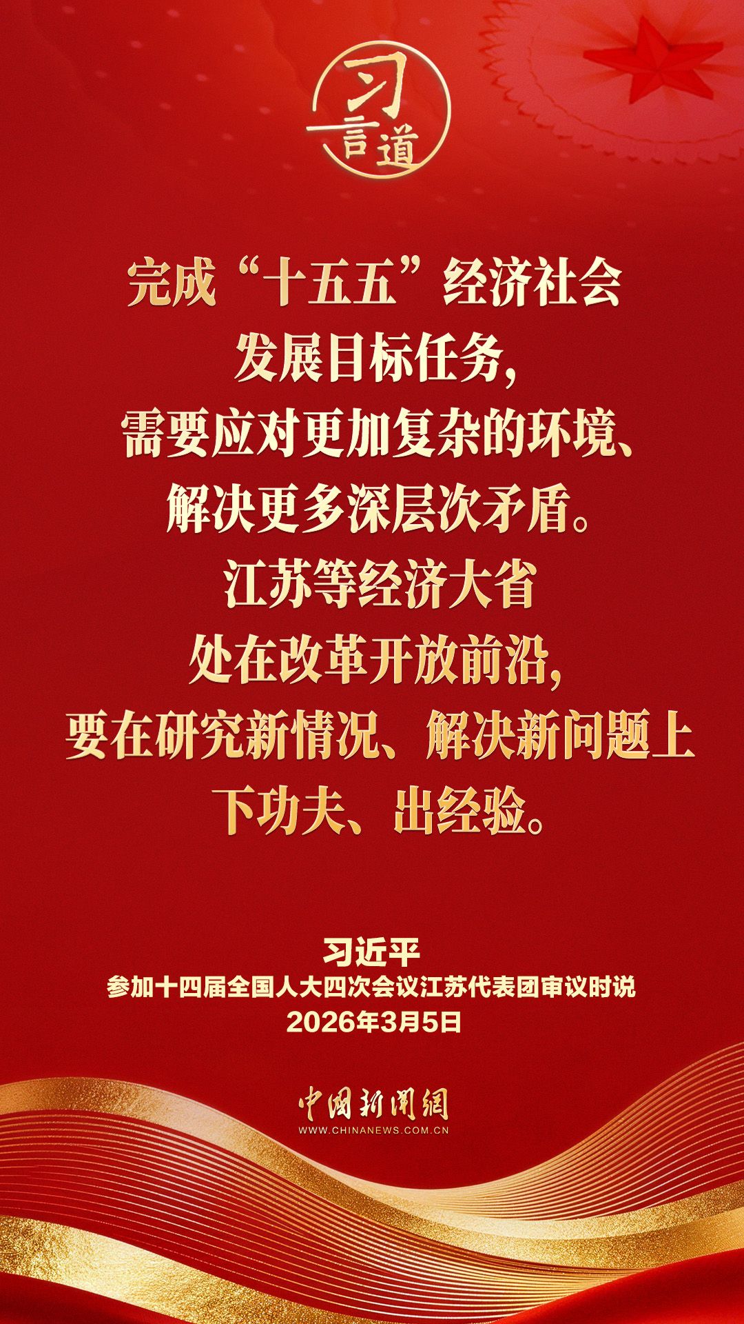 3月5日下午,中共中央总书记、国家主席、中央军委主席习近平参加他所在的十四届全国人大四次会议江苏代表团审议。他指出——