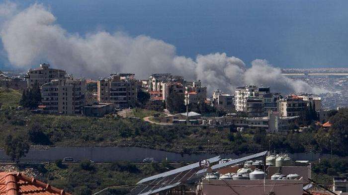 在黎巴嫩首都贝鲁特附近的贝特梅里,空袭过后,浓烟升腾。