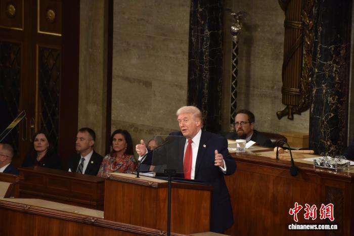 当地时间2月24日晚,美国总统特朗普在国会参众两院联席会议上发表国情咨文讲话,聚焦经济、移民等议题。这是特朗普在本总统任期内首次发表国情咨文。 中新社记者沙晗汀摄