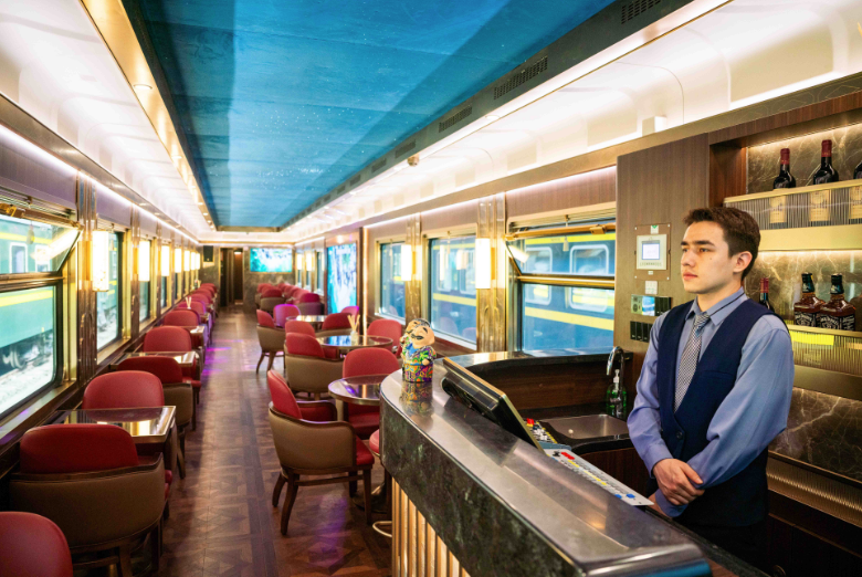 “新东方快车”设有三个等级的包厢,包厢内配备适老化硬件设施,以及“一键呼叫”按钮。每节车厢均配备专属管家,保障游客“全程无忧”。同时增设“旅拍”服务,行程结束后会为游客制作并赠送专属短视频纪念册。