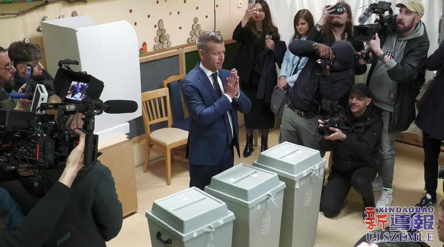 4月12日,在匈牙利首都布达佩斯,匈牙利蒂萨党领导人毛焦尔·彼得在一处投票站投票。(新导报实习记者刘秦羽摄)