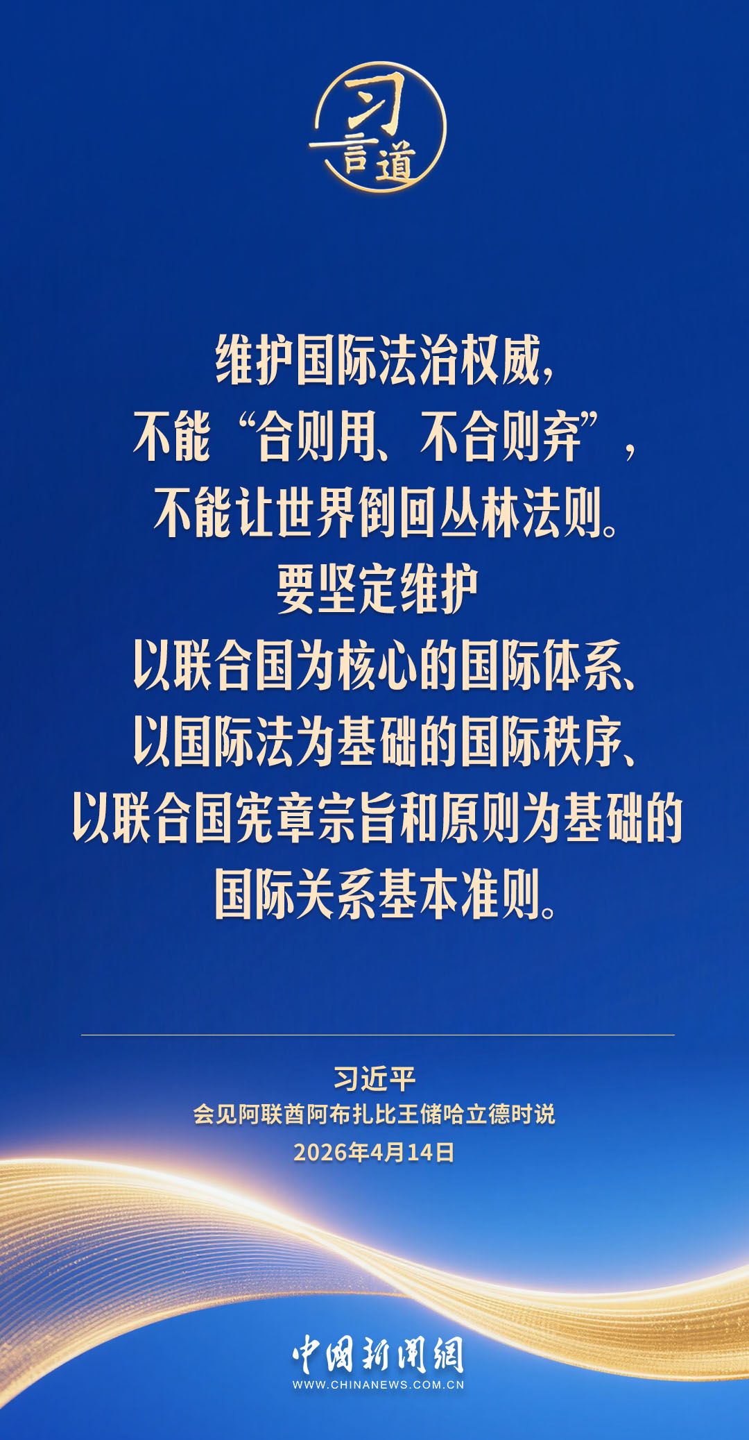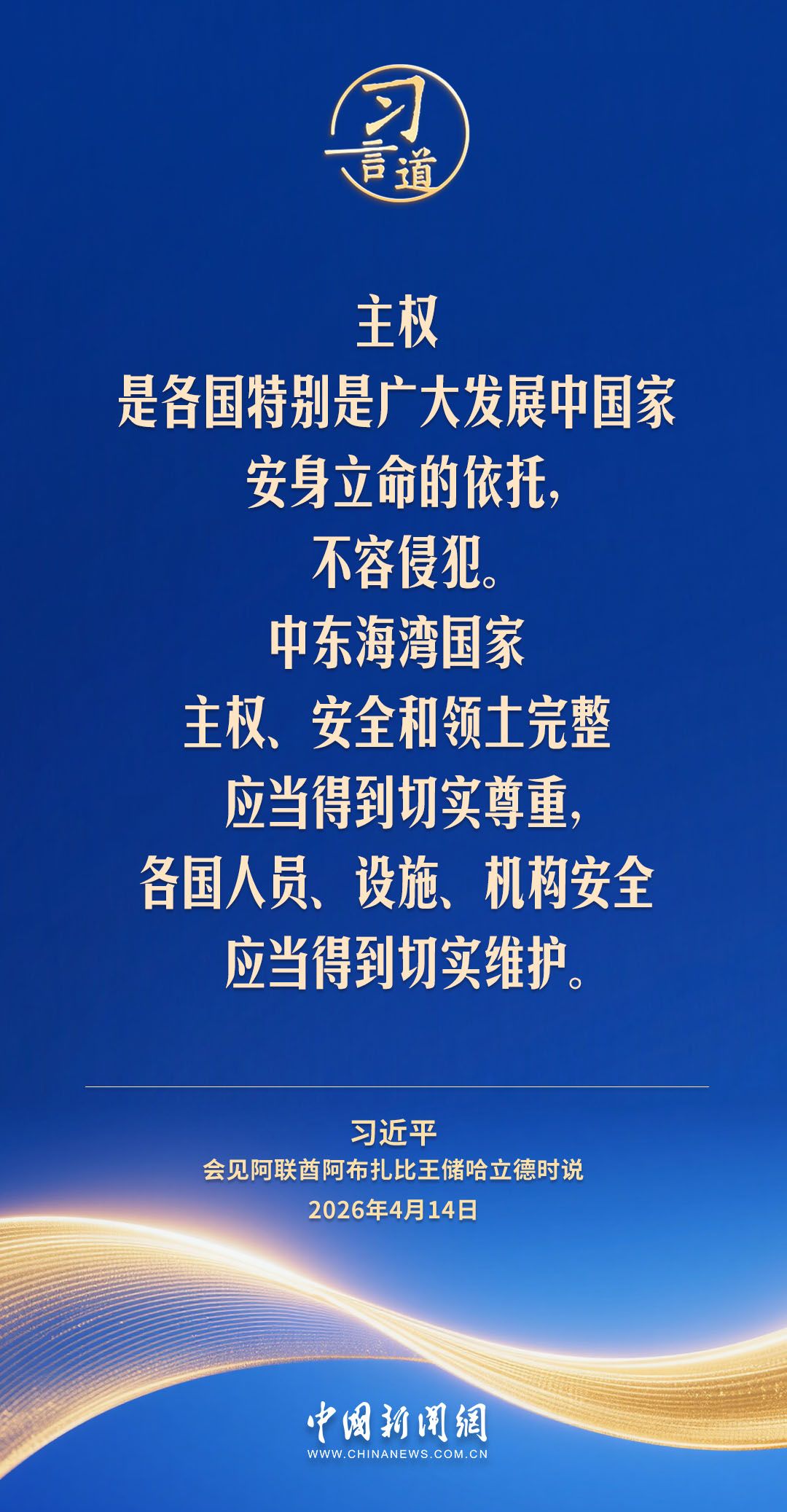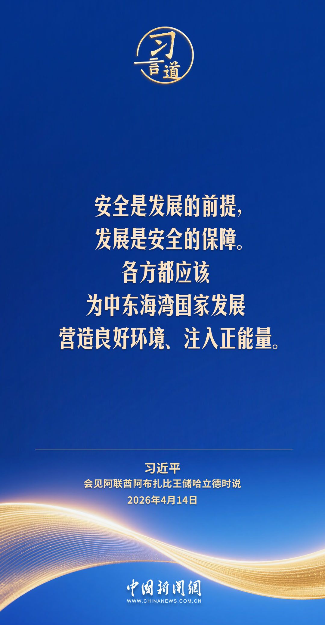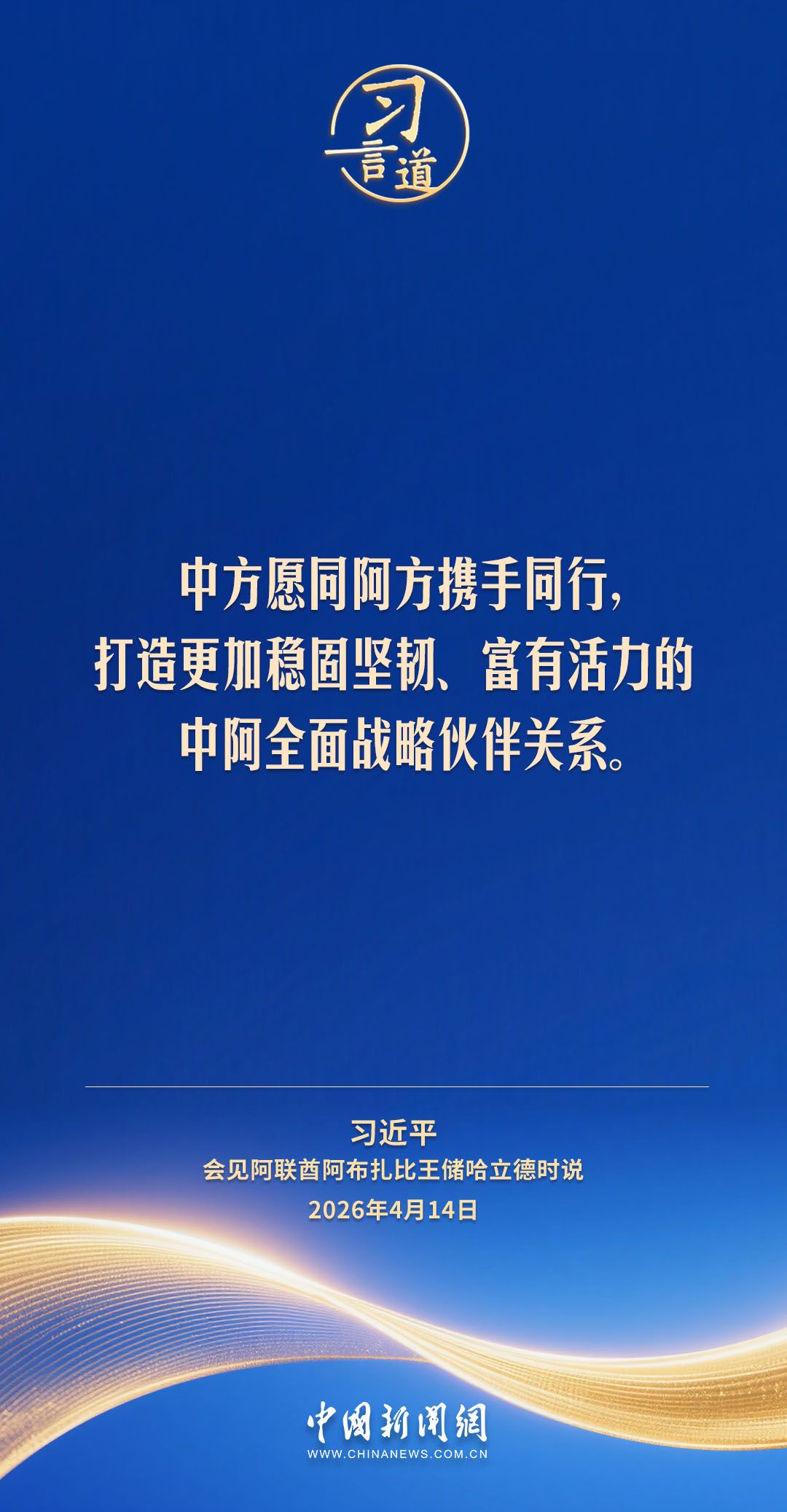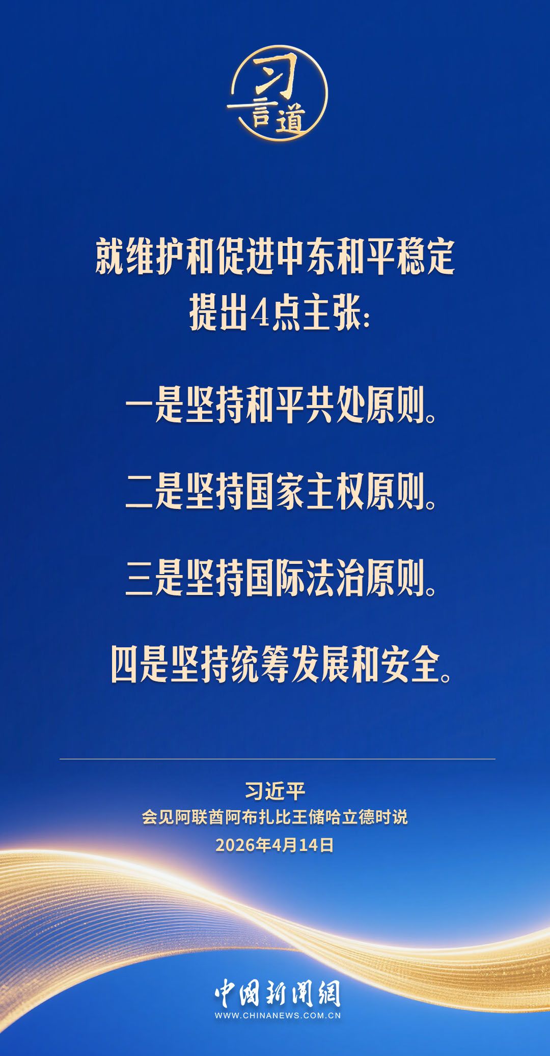 4月14日,国家主席习近平在北京人民大会堂会见来华访问的阿联酋阿布扎比王储哈立德。习近平指出——