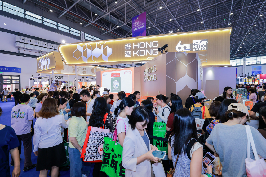 4月13日,第六届中国国际消费品博览会上香港时尚馆展位前人流络绎不绝。图/中新社