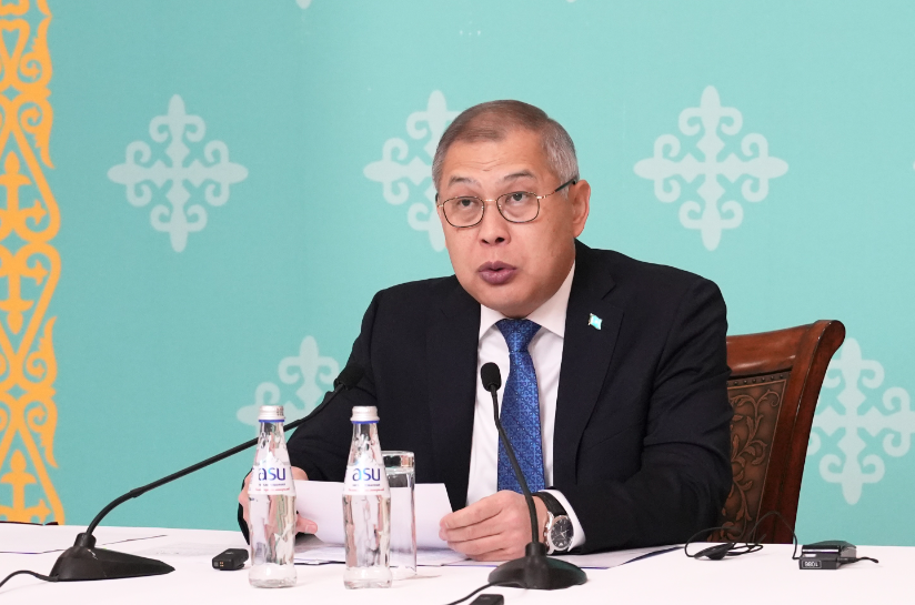 4月22日,哈萨克斯坦驻华大使沙赫拉特·努雷舍夫在北京举办新闻发布会。图/中新社