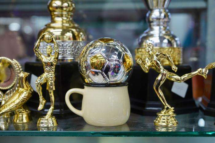 4月21日,商家陈列的足球类奖杯配件。2026年美加墨世界杯临近,义乌市场相关产品订单持续增长。中新社记者董易鑫摄