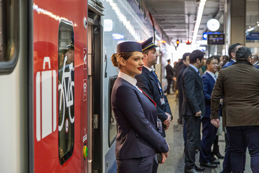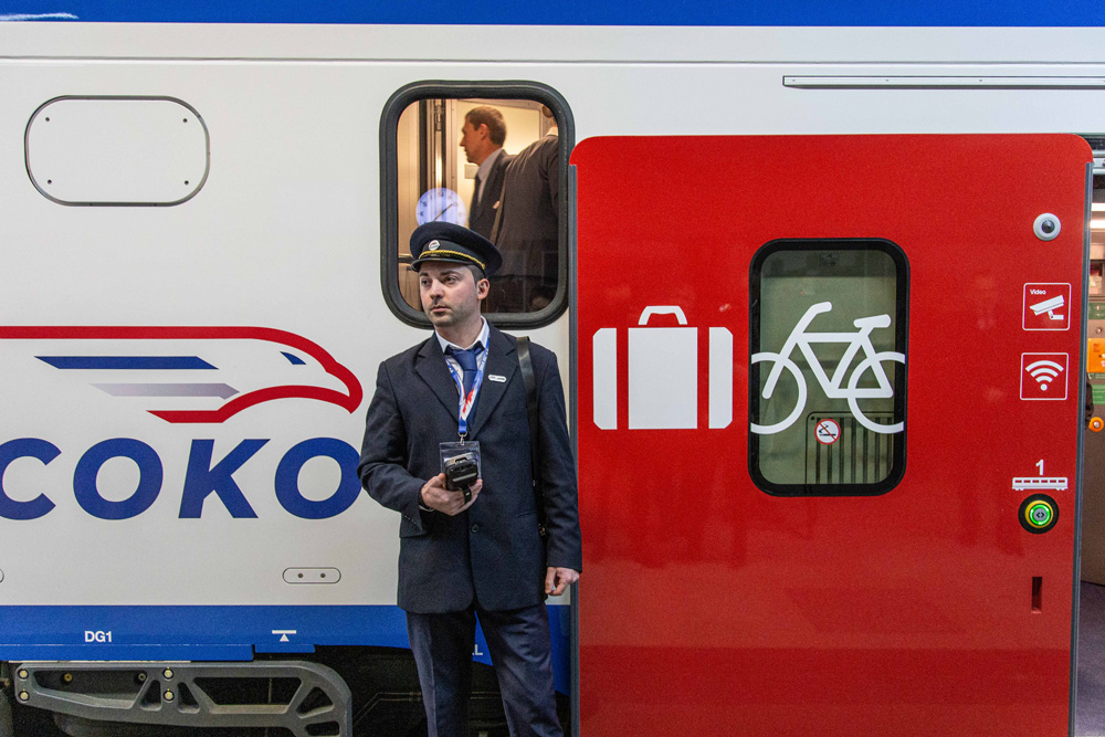 3月19日,在塞尔维亚首都贝尔格莱德,乘务员在等待乘客上车。图/新华社