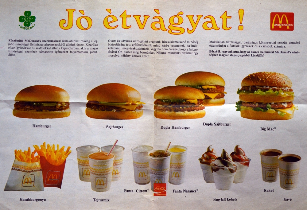 其中一个原因就是当时匈牙利餐厅几乎只提供两种肉:高端餐厅里的精致菜肴,以及低端平民的炖牛肉、香肠。而这时,麦当劳的汉堡在两者之间找到了一个合适的位置。麦当劳的匈牙利合作伙伴、Bábolna农业联合公司代表Róbert Burgert,曾在开业那天打包票,说“即使是在当时的背景下,麦当劳也能大量生产高质量产品”。