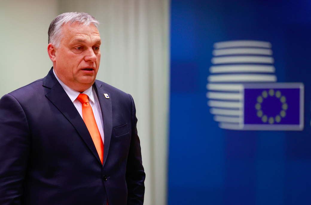 3月24日,匈牙利总理欧尔班抵达欧盟总部,准备出席欧盟峰会。图/新华社