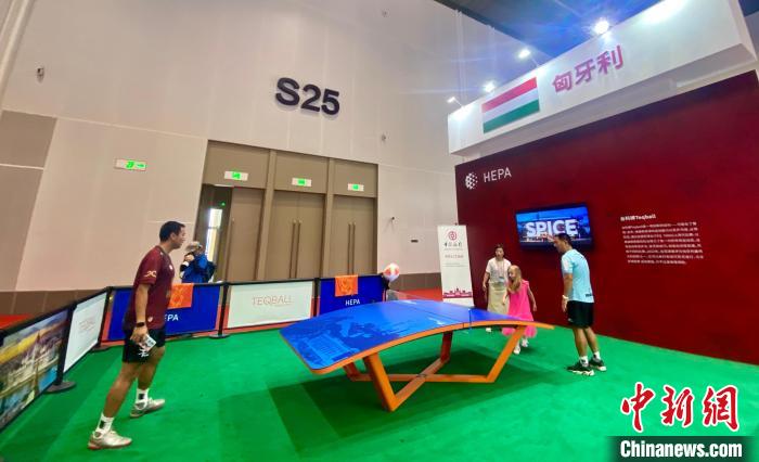 匈牙利国家馆中,嘉宾体验匈牙利桌式足球。图/中新网