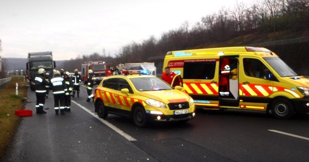匈牙利国家灾难局发布消息,5月14日下午两点左右,在通往Győr方向的M1高速公路第72公里处发生严重交通事故:由于牵引挂车急刹车,导致车上货物压在违章滞留在货舱里的人身上,造成3人死亡、两人受伤。