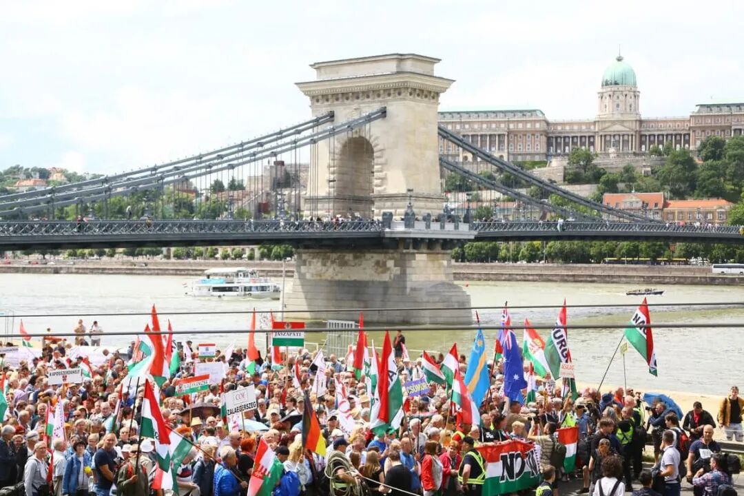 6月1日,匈牙利举行反对卷入俄乌冲突、反对北约试图将成员国拖入冲突的“和平游行”,数万名当地民众参加。