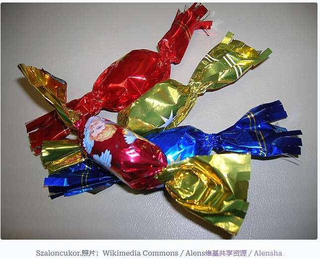 匈牙利人用szaloncukor来装饰圣诞树:将独立包装的糖果直接绑在树枝上。