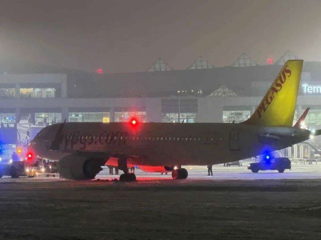 布达佩斯机场方面周一向匈牙利通讯社证实,在将飞马航空PC332航班从布达佩斯拖往伊斯坦布尔的过程中,一辆地面牵引车因路面湿滑偏离了坚硬的沥青路面,驶入草地区域,导致飞机一度被困。所幸事件中无人受伤。