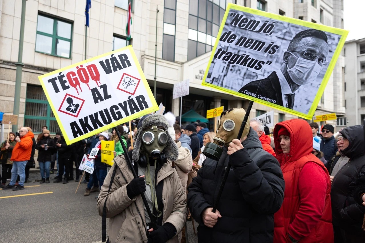 2月15日,数百名民众聚集在布达佩斯抗议位于Göd的三星电池厂带来的环境和健康风险/Németh Dániel