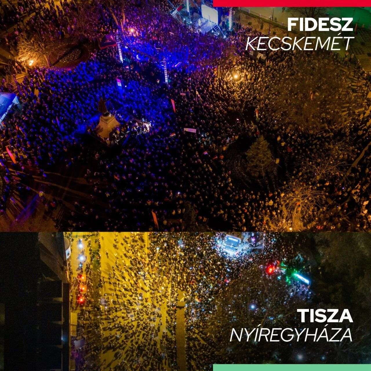 欧尔班在社交媒体展示青民盟与蒂萨党在不同地区进行拉票活动时的场景/facebook