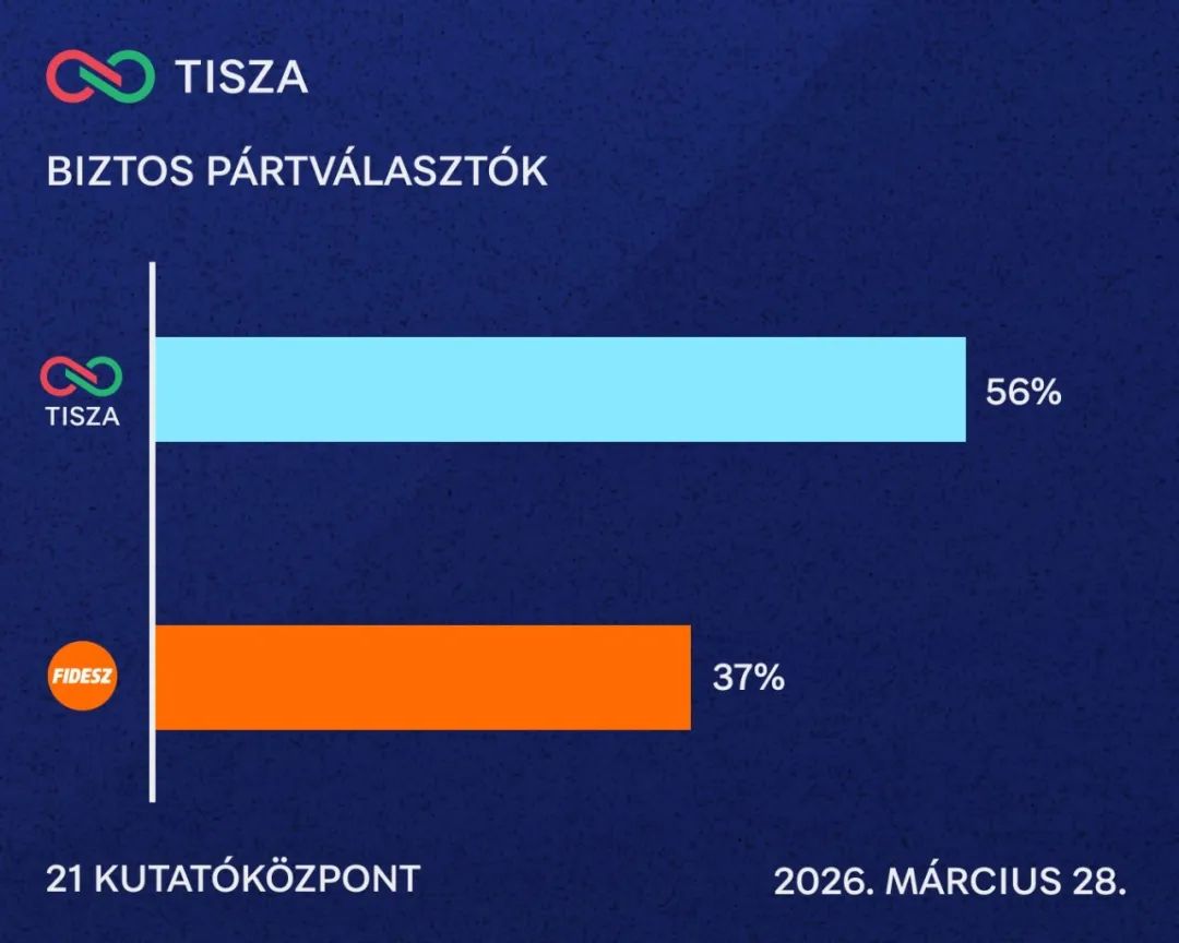 另据匈媒报道,当前不同民调机构的预测数据存在较大差异,21Kutatóközpont的民调显示,蒂萨党支持率为56%,青民盟支持率为37%。Republikon的民调显示,在确定会投票的选民中,蒂萨党支持率为49%,青民盟支持率为40%。