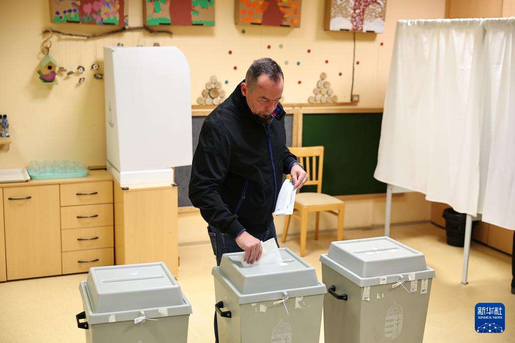 4月12日,在匈牙利首都布达佩斯,匈牙利蒂萨党领导人毛焦尔·彼得在一处投票站投票。新华社发(鲍洛格·达维德摄)