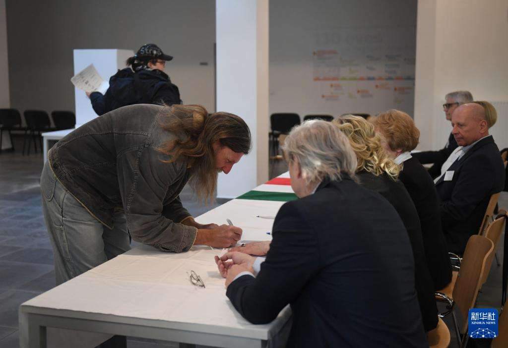4月12日,选民在匈牙利布达佩斯一处投票站参加投票。新华社记者贺灿铃摄