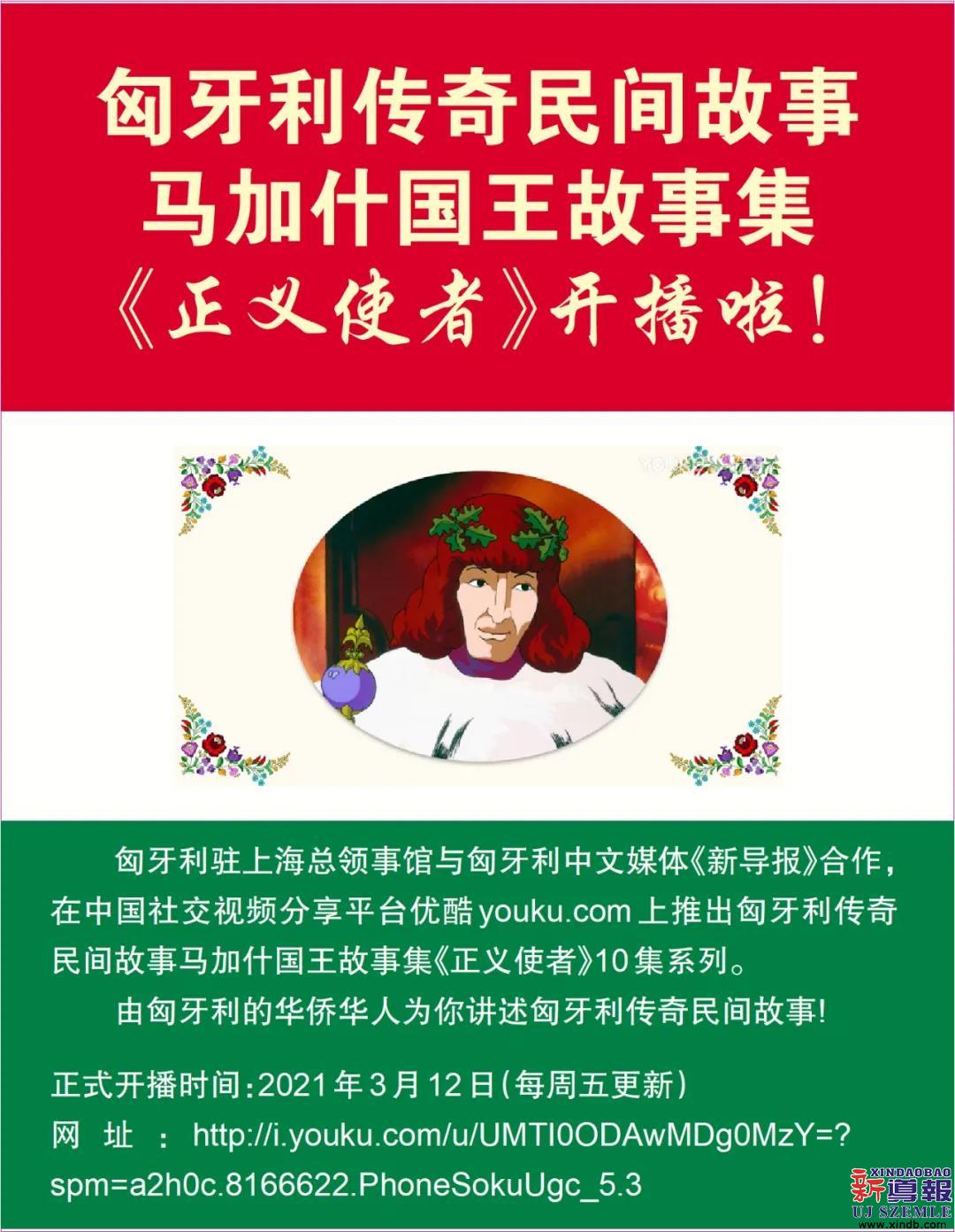 由匈牙利驻上海总领事馆与匈牙利当地中文媒体《新导报》合作,在中国社交视频分享平台优酷(youku.com)上推出匈牙利传奇民间故事马加什国王故事集《正义使者》10集系列现正播出。