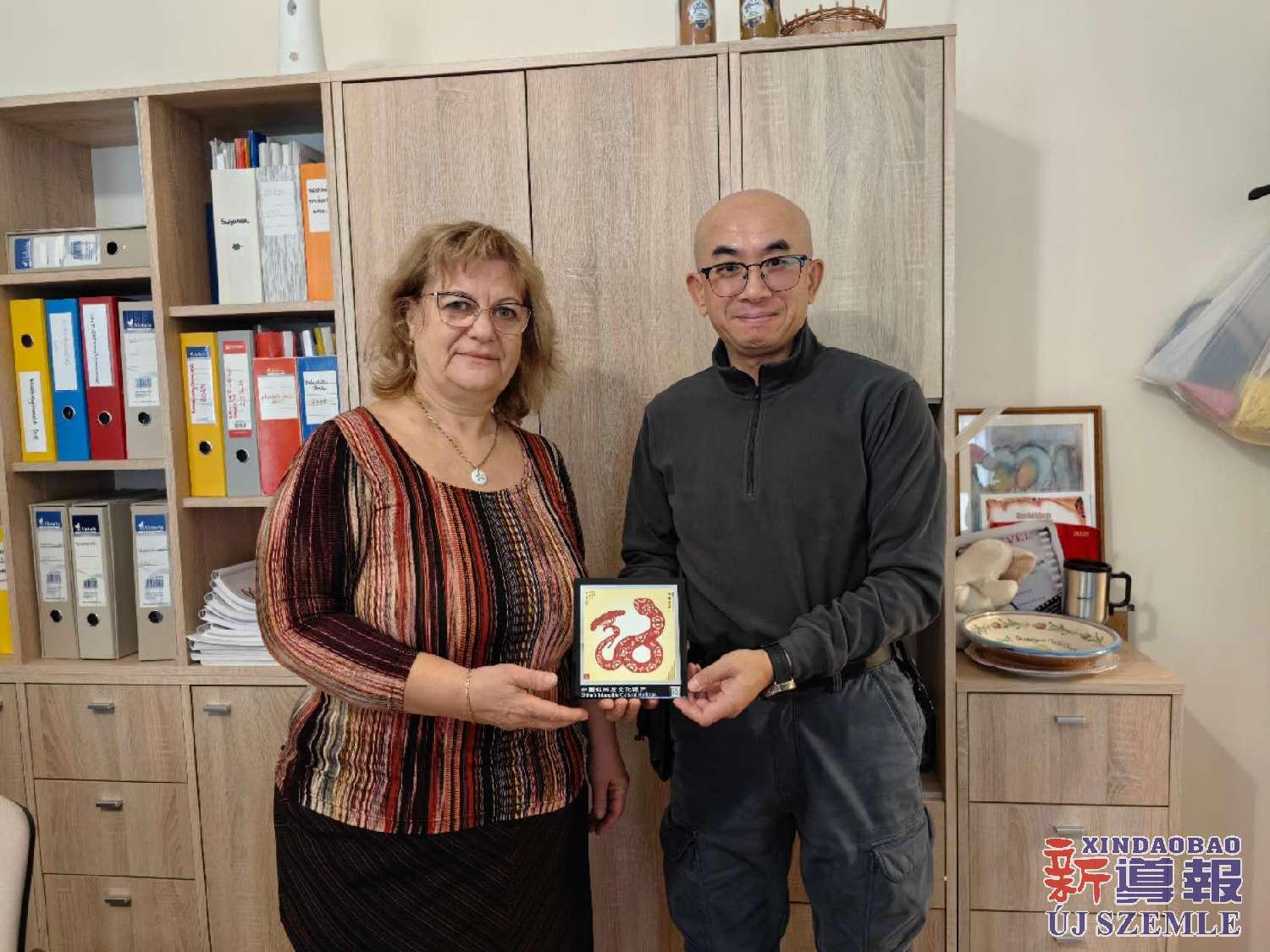 新导报讯:2025年12月3日,应匈方邀请,匈牙利-中国文化交流协会会长滕维杰一行前往匈牙利亚斯费尼绍鲁市(Jászfényszaru),与该市副市长特罗克·玛格多娜(LovásznéTörök Magdolna)女士、文化馆馆长科瓦奇·卡塔琳(BordásnéKovács Katalin)女士等人就共同举办第八届“中国春”文化节活动进行了磋商。双方均表示,希望通过组织中、匈文化交流活动,促进了解、增进友谊。